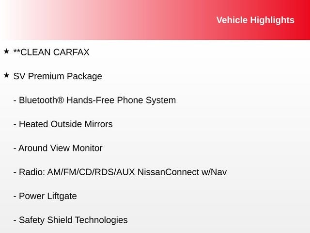• SV Premium Package, including Around View Monitor, Power Liftgate, Safety Shield Technologies, and more