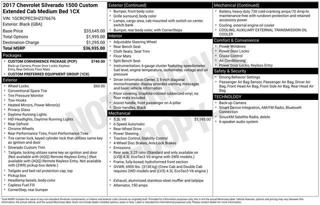 Black 2017 Chevrolet Silverado 1500 Custom EcoTec3 5.3L V8 6-Speed Automatic Electronic with Overdrive RWD
