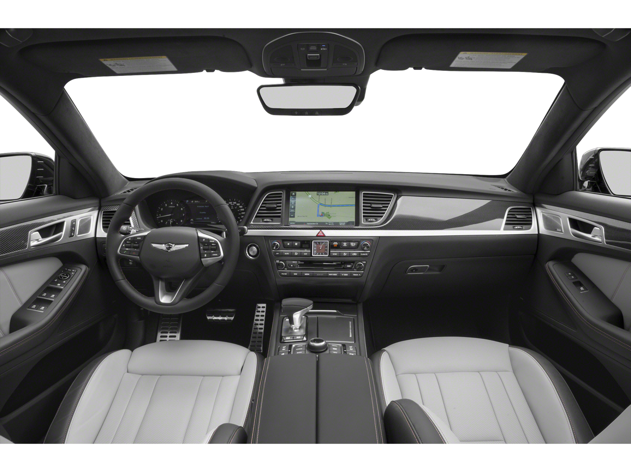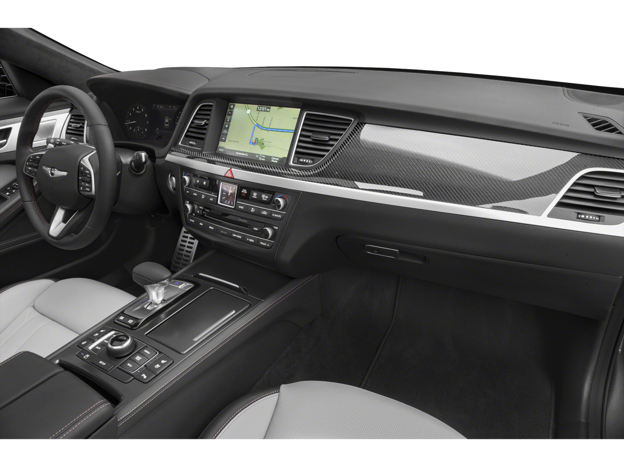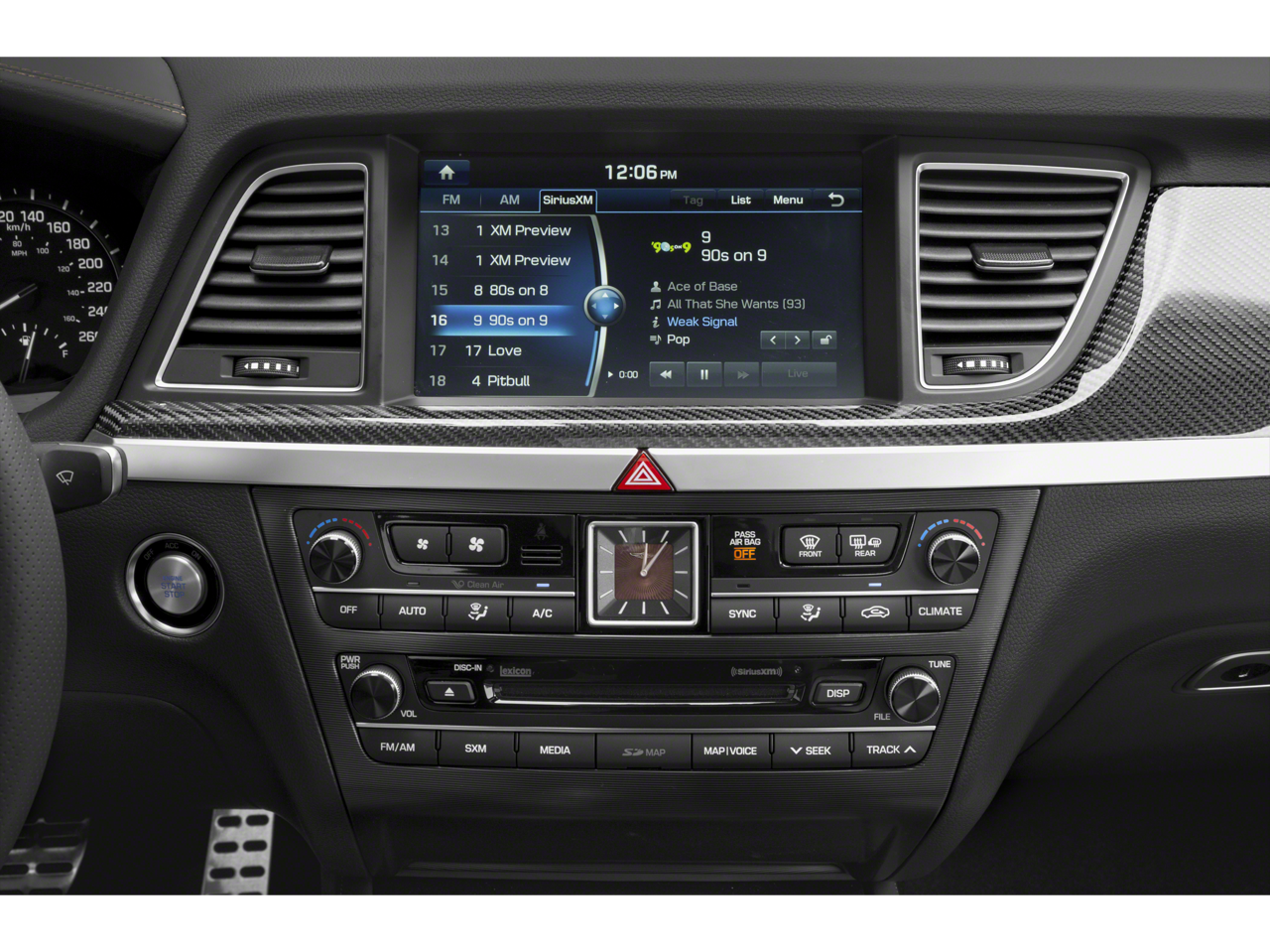 - Radio: AM/FM/HD/SiriusXM/CD/DVD/MP3 Audio System -inc: Lexicon Quantum Logic surround sound system w/17 high efficiency speakers (1 front coaxial dash-mounted midrange, 1 front dash-mounted tweeter, 2 front dash-mounted midrange, 2 front door-mounted tweeters, 2 front door-mounted woofers, 2 rear door-mounted tweeters, 2 rear door-mounted midrange, 2 rear door-mounted woofers, 2 rear deck midrange and rear deck subwoofer), Clari-FI Music Restoration Technology, Lexicon 12-channel digital external amplifier: 75W x 12 channels (900W max, equivalent output), speed-sensing auto volume control, AVN 2.0 navigation system, 9.2" touchscreen 720P HD display, driver information system, SiriusXM Traffic, Android Auto, Apple CarPlay, 1 USB data/charge plus 1 USB charge only, Bluetooth® hands-free phone system w/audio streaming and Genesis Connected Services