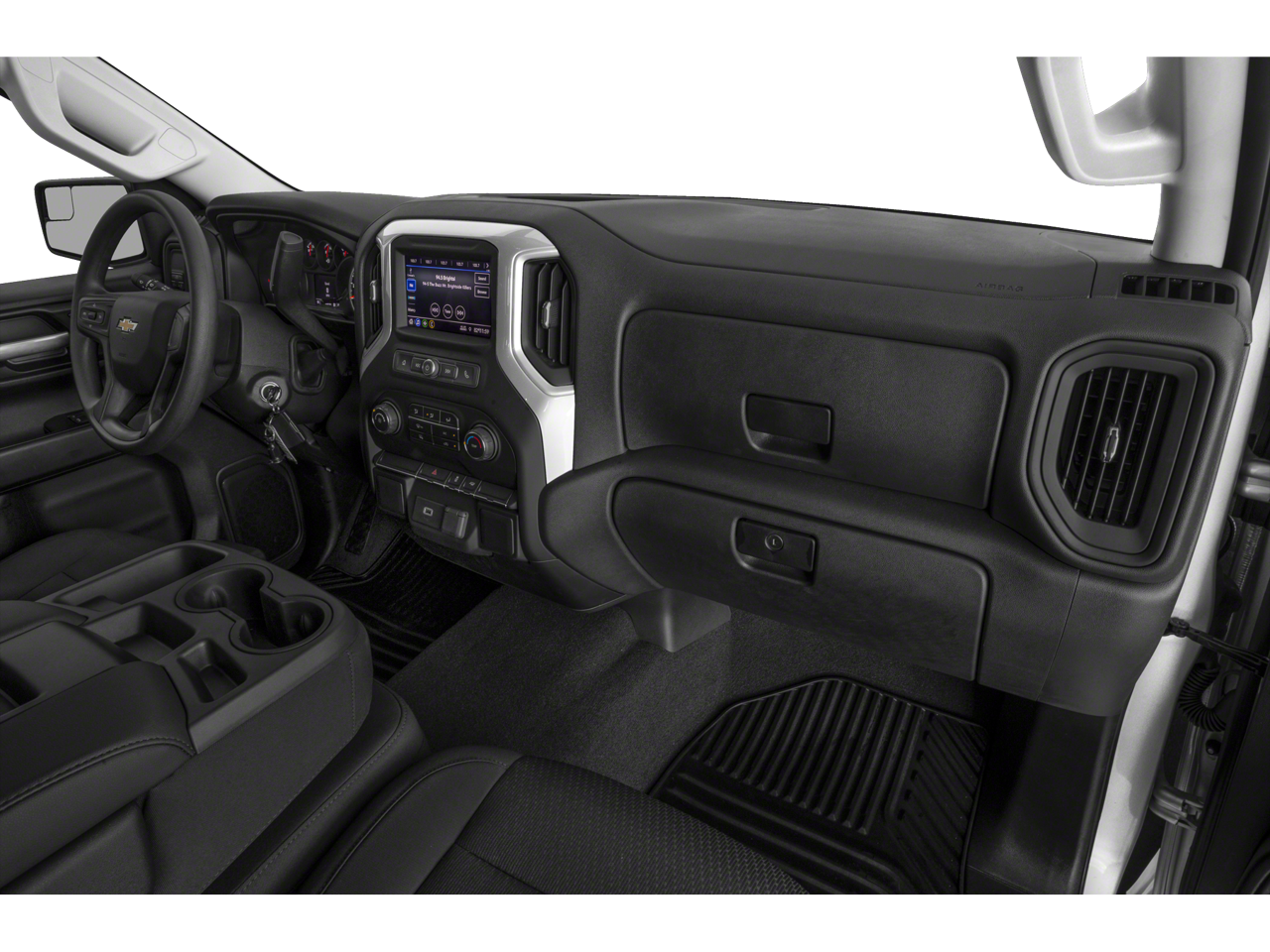 The interior of the Silverado 1500 Custom is designed with your comfort and convenience in mind. Enjoy the intuitive Chevrolet Infotainment 3 System, complete with SiriusXM Radio and Bluetooth® connectivity, as well as the available single-zone manual/semi-automatic air conditioning. The spacious 40/20/40 split-bench front seat with covered armrest storage provides ample room for you and your passengers.