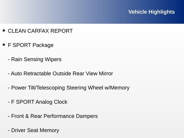 Elevate your driving experience with the captivating 2020 Lexus ES 350 F Sport. This exceptional vehicle combines the renowned Lexus craftsmanship with dynamic performance, cutting-edge technology, and unparalleled comfort, making it the ultimate choice for the discerning driver.