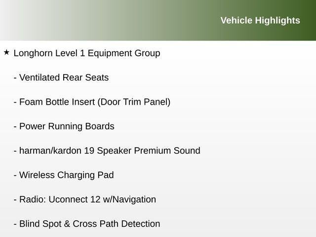 Highlighted by the Longhorn Level 1 Equipment Group, this truck is equipped with an array of advanced technologies and comfort-enhancing amenities, including: