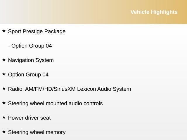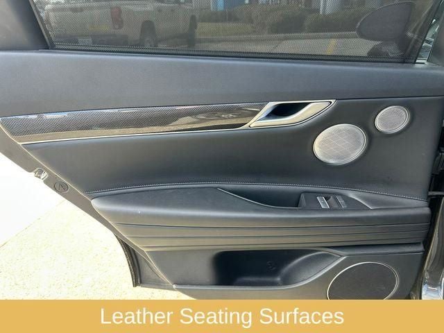 21 Speakers, 4-Wheel Disc Brakes, ABS brakes, Adaptive suspension, Air Conditioning, Alloy wheels, AM/FM radio: SiriusXM, Android Auto & Apple CarPlay, Anti-whiplash front head restraints, Auto High-beam Headlights, Auto tilt-away steering wheel, Auto-dimming door mirrors, Auto-dimming Rear-View mirror, Automatic temperature control, Bumpers: body-color, Compass, Delay-off headlights, Driver door bin, Driver vanity mirror, Dual front impact airbags, Dual front side impact airbags, Electronic Stability Control, Emergency communication system: Genesis Connected Services, Exterior Parking Camera Rear, Forward Collision-Avoidance Assist, Four wheel independent suspension, Front anti-roll bar, Front Bucket Seats, Front Center Armrest, Front dual zone A/C, Front reading lights, Fully automatic headlights, Garage door transmitter: HomeLink, Heated & Ventilated Front Bucket Seats, Heated door mirrors, Heated front seats, Heated rear seats, Heated steering wheel, Highway Driving Assist, Illuminated entry, Knee airbag, Leather Seating Surfaces, Leather steering wheel, Low tire pressure warning, Memory seat, Mud Guards, Navigation System, Occupant sensing airbag, Outside temperature display, Overhead airbag, Overhead console, Panic alarm, Passenger door bin, Passenger vanity mirror, Power door mirrors, Power driver seat, Power moonroof, Power passenger seat, Power steering, Power windows, Radio data system, Radio: AM/FM/HD/SiriusXM Lexicon Audio System, Rain sensing wipers, Rear air conditioning, Rear anti-roll bar, Rear Bumper Applique, Rear reading lights, Rear seat center armrest, Rear side impact airbag, Rear Window Blind, Rear window defroster, Remote keyless entry, Reversible Cargo Tray, Security system, Speed control, Speed-sensing steering, Speed-Sensitive Wipers, Sport Prestige Package, Steering wheel memory, Steering wheel mounted audio controls, Tachometer, Telescoping steering wheel, Tilt steering wheel, Traction control, Trip computer, Turn signal indicator mirrors, Variably intermittent wipers, Ventilated front seats, Wheels: 19x8.5J Fr & 19x9.5J Rr Alloy.