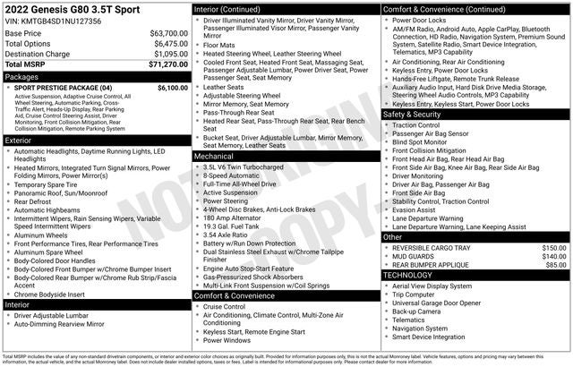 2022 Genesis G80 3.5T