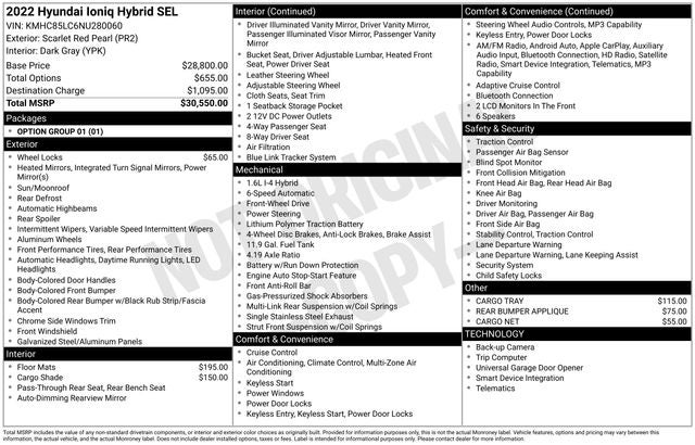 Complementing the impressive array of technology and convenience features, this Ioniq Hybrid SEL also boasts a stunning Red exterior, adding a touch of style and sophistication to your daily commute.