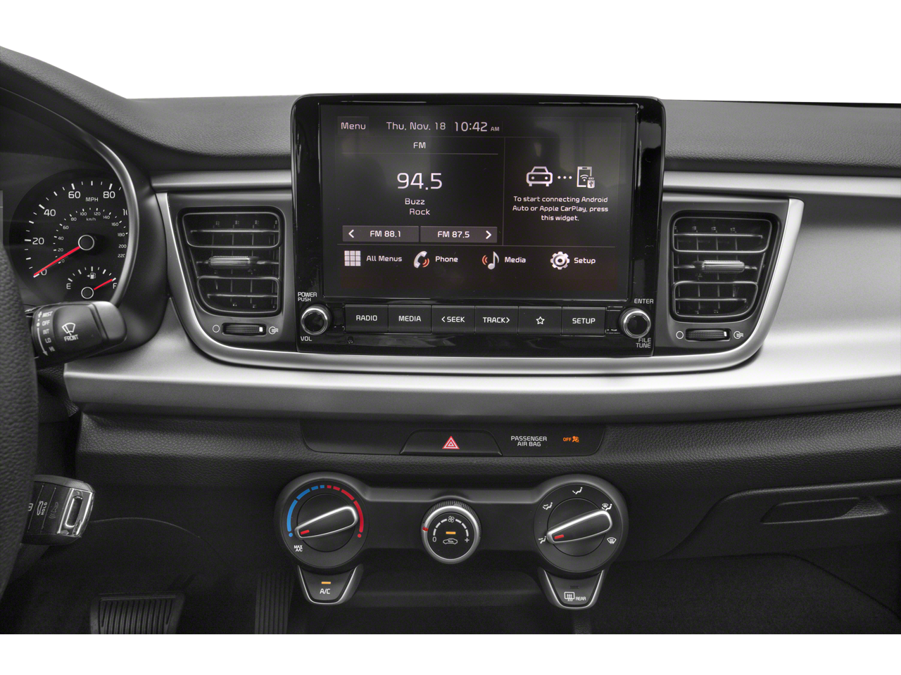 - Radio: AM/FM/MP3 Audio System -inc: 6 speakers, 8" display screen, steering wheel-mounted audio controls, USB input jack, USB charging, Bluetooth® wireless technology and wireless Apple CarPlay/Android Auto