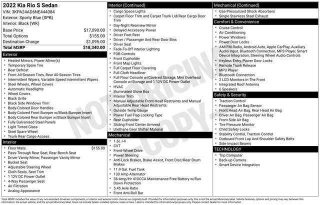 2022 Kia Rio S