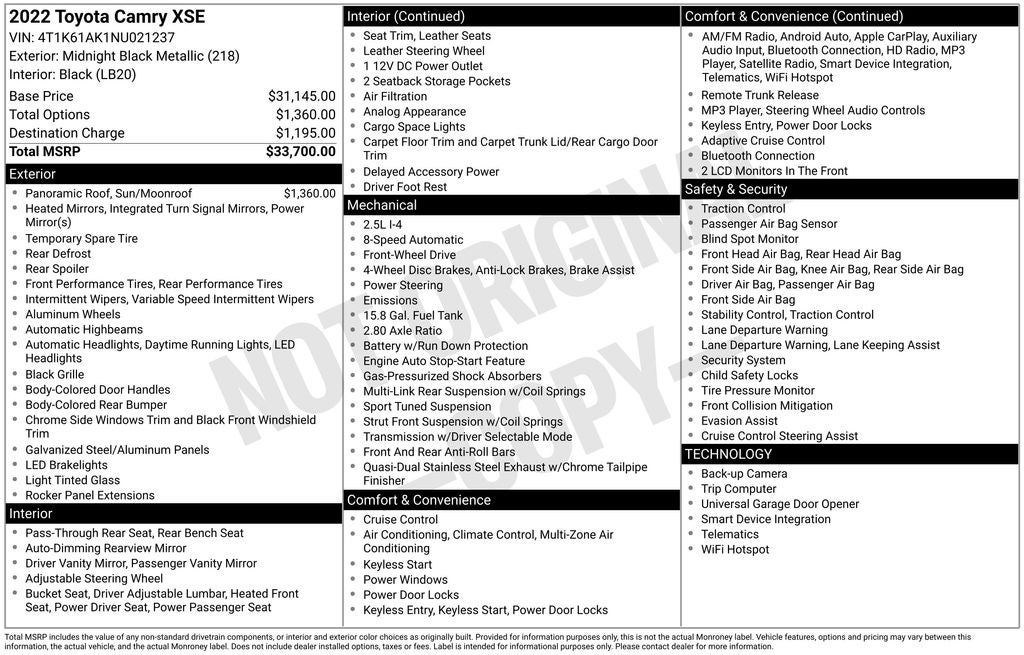- Vehicle Name: Toyota Camry