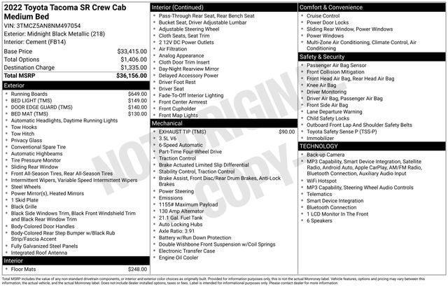 Whether you're hauling heavy loads, navigating rough terrain, or simply commuting in style, this 2022 Toyota Tacoma SR V6 is ready to rise to the challenge. Visit us today to see it in person and discover why the Tacoma is one of the most trusted names in the mid-size pickup segment.