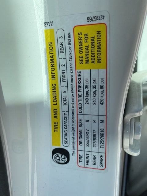 - Tires, 225/60R17 all-season, blackwall