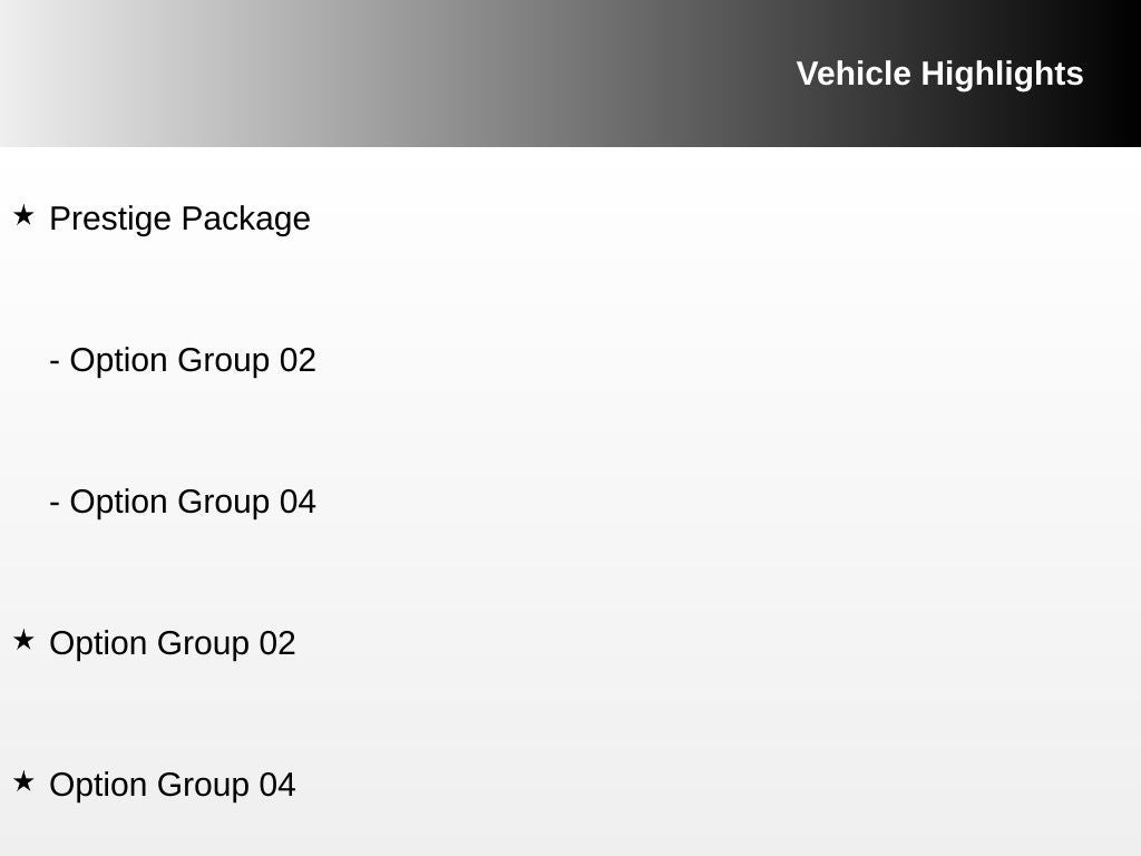 Option Group 02, Option Group 04, Prestige Package.