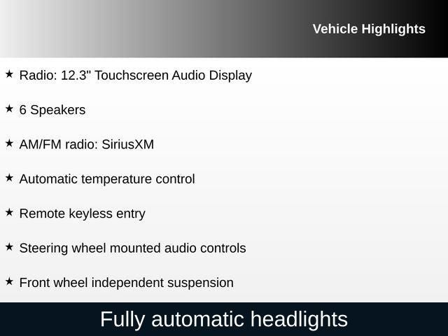 - Radio: 12.3" Touchscreen Audio Display -inc: SiriusXM, HD Radio, 6 speakers, USB connectivity, wired and wireless Apple CarPlay and Android Auto and audio and Bluetooth® hands-free w/steering remote control